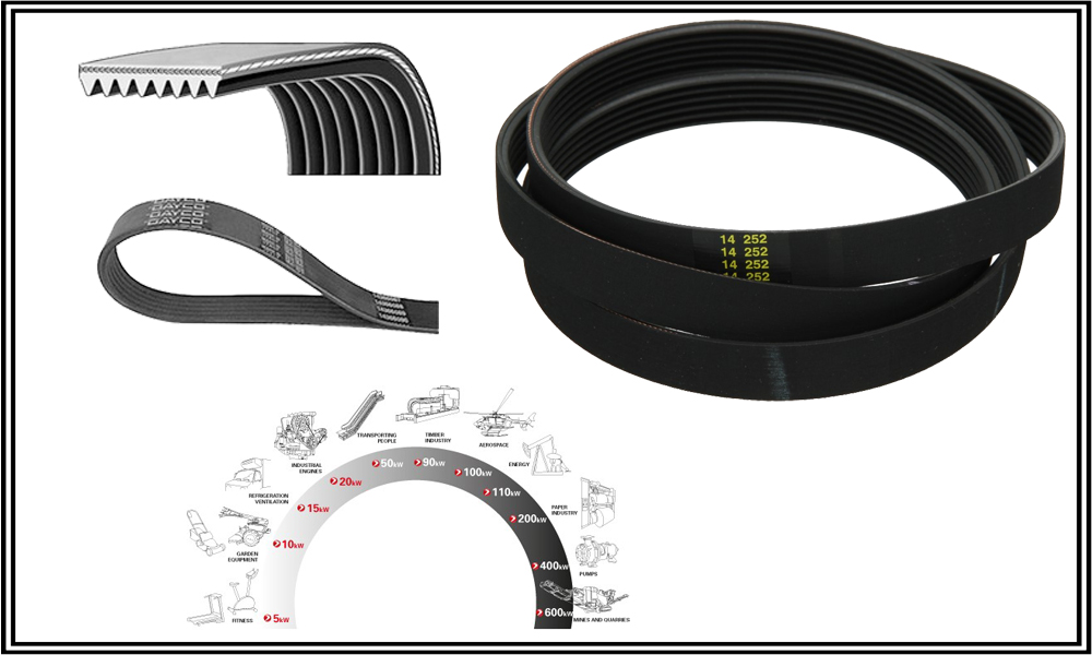 The Poly V is a power transmission belt featuring multiple longitudinal ribs.