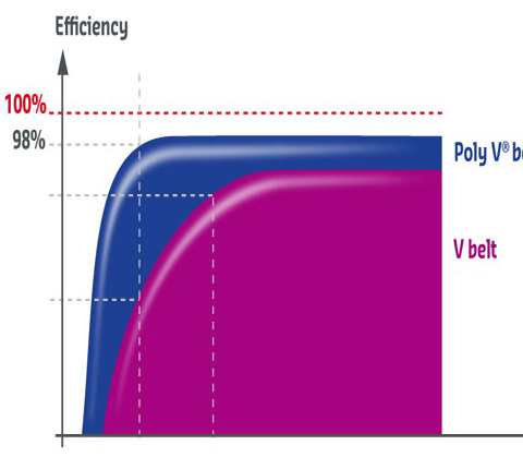 Iso-tension and iso-geometry technical tests show that the Poly V can achieve an output several percent higher: over 98%, which can reduce energy consumption and sometime even engine size.
