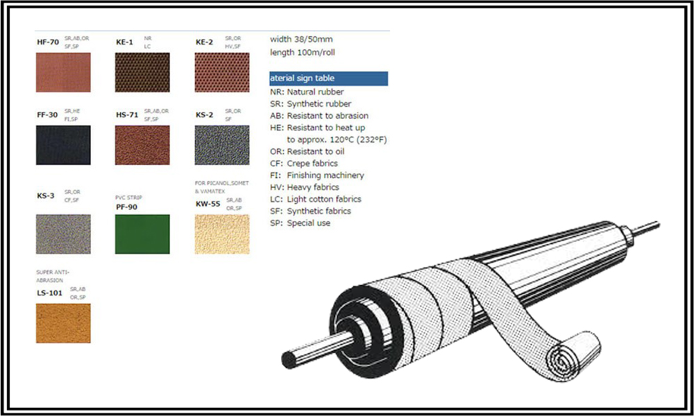 Kureha Elastomer Company Ltd. has over 40 years of experience in the textile industry. Their rubber strips (roll coverings) are particularly popular with Japan's major textile machine manufacturers like Tsudakoma, Nissan, Toyoda and Ishikawa who are using Kureha rubber strips as exclusive original equipment parts.