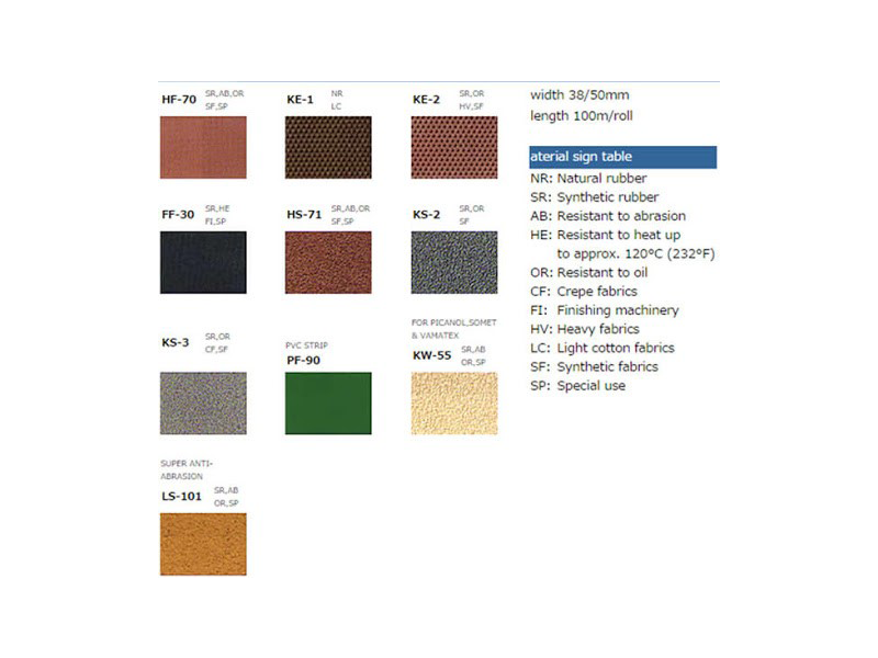 A pioneer in rubber technology since 1943, Kureha has accumulated know how for various kinds of material from NATURAL and SYNTHETIC rubber to TPE (Thermo plastic elastomer) based on rubber processing technologies. Kureha Elastomer Company Ltd. has over 40 years of experience in the textile industry. Their rubber strips (roll coverings) are particularly popular with Japan's major textile machine manufacturers like Tsudakoma, Nissan, Toyoda and Ishikawa who are using Kureha rubber strips as exclusive original equipment parts.