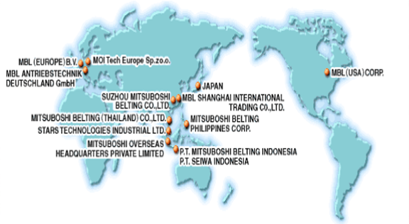 From Kobe, the Mitsuboshi network reaches across Japan and around the world. Mitsuboshi Belting began business in Kobe, Japan, in 1919. Over the years, the business has grown together with its markets, production systems have been continuously improved, and sales and service strengthened. Today the Mitsuboshi Group operates around the world, and looking ahead to the 21st century and beyond, we see the group becoming an important contributor to more affluent lifestyles worldwide.